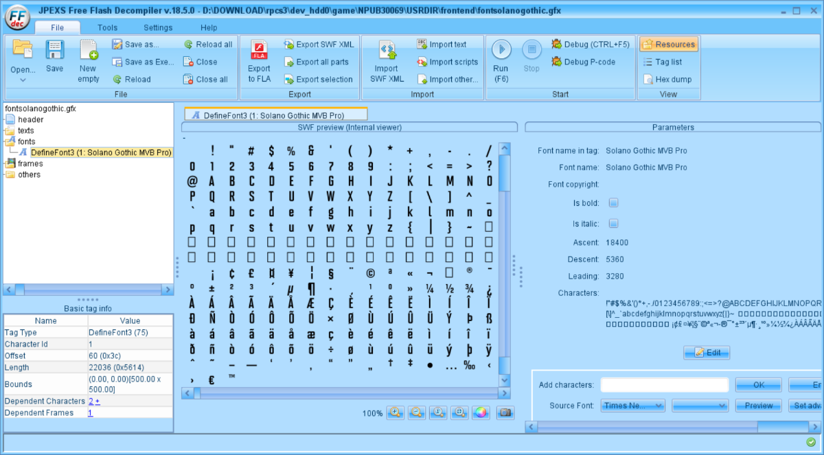 *.abc is font map. Maybe you can add some characters in it. Now for the texture. Original is 32 bit rgba, yours is DXT5 which is not exact as org. Also i noticed you didn't change alpha channel of the char which is crucial for correct display. -