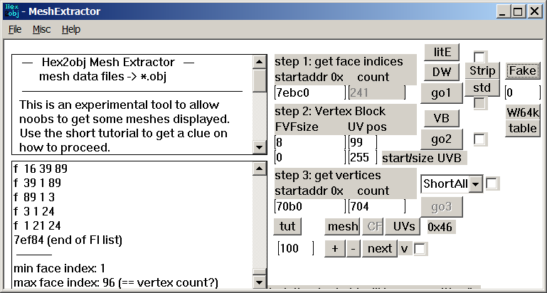 I did some work on my script, it roughly divides the file into different meshes. Though I've yet to find a way to make it 100% consistent. Most meshes are off by a few vertices. It would be cool if you looked up for any patterns here vram converter.zip1 point