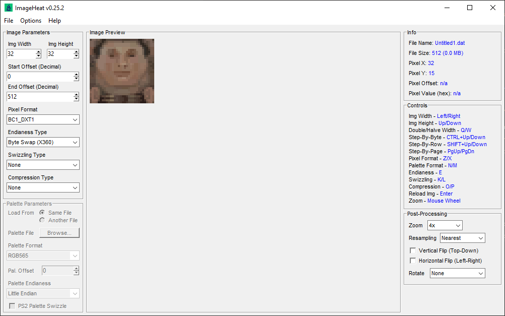 For extracting raw data from archives you can use the same script you linked (punisher_ps2_peg.bms) as archive file format is the same across all platforms https://rewiki.miraheze.org/wiki/The_Punisher_CEG_PEG_XEG The difference is in the image encoding, PC version uses standard DXT5 or RGBA8888, while encoding seems to be different on PS2 and XBOX. I was not able to find correct setting with ImageHeat. Here's how it looks for PC sample:1 point