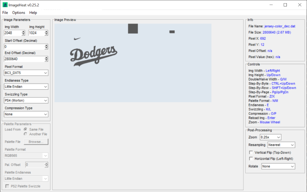 Hi experts. I'm trying to read the MT2 images from Indiana Jones and the Emperor's Tomb (PS2), but I'm stuck trying to piece it all together. The images in the PC version are 32-bit RGBA, so that's easy, and gives us a comparison. For the same image in the PS2 version, it seems to be broken down like this... 64 bytes - basic image data (filename, width, height, etc) width*height/2 - 4-bit pixel values (with 4bit PS2 swizzling) width*height/8 - color values This is what the pixel block looks like, as 4-bit values in grayscale: The color values in the last block, look to be something similar to RGBA5551, so even though the length of this block is width*height/8, as they are 16-bit colors, there are actually only width*height/16 colors. This is what the color block looks like when read as RGBA5551 color values: ... you can see the image in that "color block". I know it's not quite the right colors, but think it might just need some color striping applied to it, or it might not be exactly RGBA5551. As the width/height increase, so does the size of the color block, so it's not a plain palette, it's proportional to the image size. For example, for a 128x128 image, the color block is 2048 bytes. For a 256x256 image, the color block is 8192 bytes. I'm struggling to work out how to join the "pixel" block and the "color" block together so that we end up with a usable image that looks similar to the PC image. I'm assuming maybe we need to generate some in-between colors like in a DDS image, or otherwise apply some kind of "intensity" to the colors or something like that. I've never seen anything like this before - is anyone able to assist in understanding this please? I have attached a ZIP with the PC image, the PS2 image file, and PNGs for both the "pixel" block and the "color" block, so you can clearly see there is a correlation between the 2 blocks. Thanks for your help! vinehead.zip1 point