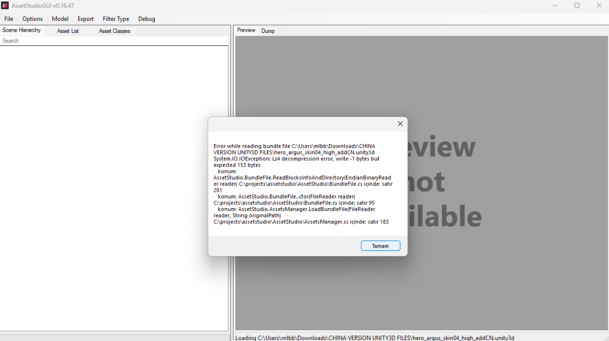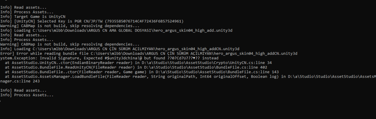 NEW GAMERS Posted September 11 Posted September 11 Greetings, I can view the global version Unity3d file with AssetStudio and RazTool Studio. However, I cannot open the China version Unity3d file. The files I sent are for the same game character. They contain the exact same mesh, texture, and files. I am uploading the errors I receive as images. I tried to open the images with AssetStudio and RazTool, but it did not open. The initial name of both is UnityFs. There is nothing before it. I know someone who has opened this, but I don't want to ask them. I need your help. Thank you. CHINA-GLOBAL-UNITY3DFILE.rar